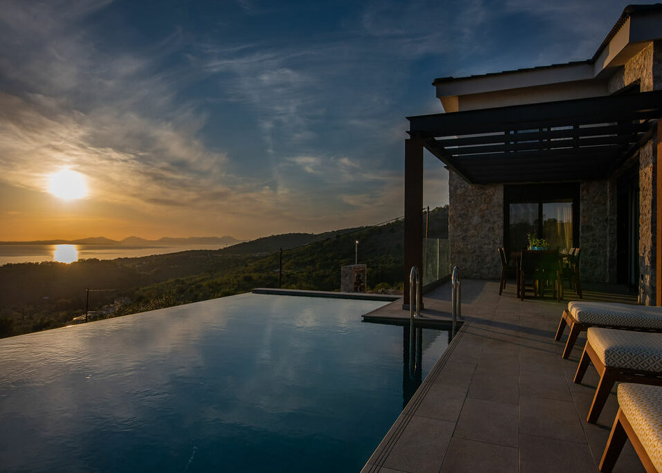 Peering over the Ionian Sea, this exclusive private estate with panoramic views is just 2 minutes from the village of Sivota and just 10 minutes from the best beaches in the Ionian Riviera.